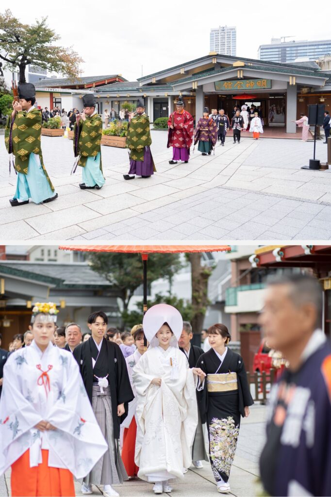 【Wedding report】家族と心繋がる感動の時間。伝統的な神前式&笑顔・涙の共感広がる披露宴パーティ挙式&パーティレポート2025.04.21 730年奈良時代に創建された『神田明神』挙式会場となる社殿には84名まで参列が可能。東京都内の結婚式場でも屈指の美しさを誇る総朱塗の社殿は花嫁姿をより一層輝かせてくれる